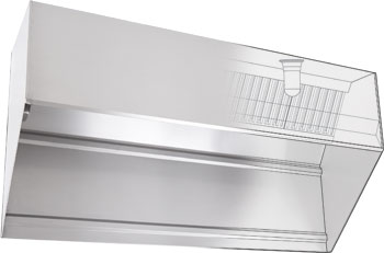 - Integral stainless steel double end panels provided to maximize hood performance and eliminate effects of kitchen cross drafts.
