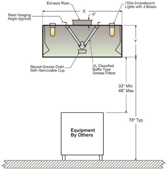 - Optional integral 3" air space to meet NFPA 96 requirements when the hood is against a limited combustible wall. Optional insulated 3" air space for combustible walls.
