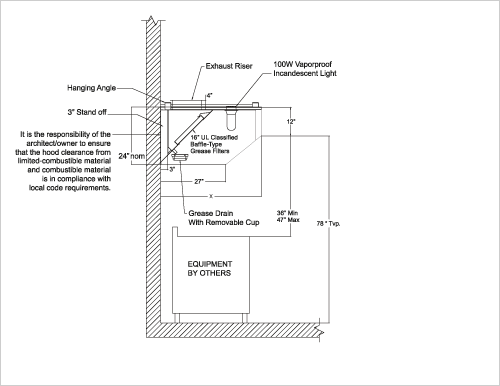 - A built-in wiring chase for electrical controls on the front face of the hood designed to avoid penetration of the capture area and eliminate the need for an external chaseway.